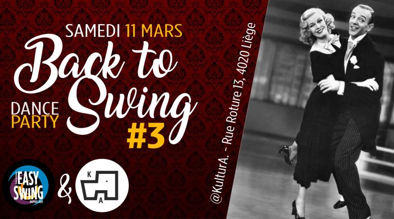 - Réservation recommandée : Envoyer un mail avec l’objet « Soirée Back to Swing-Liège » à info@easy-swing.be
