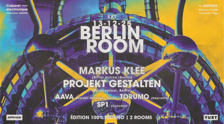Berlin room revient au QG après une édition spéciale à Charleroi de feu. Pour cette édition 100% techno, plongez au cœur de la nuit berlinoise sans quitter la ville.
