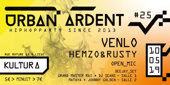 Urban Ardent •Hip-Hop Party• sont des soirées HIP-HOP organisées à Liège, il est le fruit d’une collaboration entre Nectar asbl, Indocile et La Cabane • Collectif chaque soirée a son lot d’invités, les amateurs de hip-hop se délecteront des décibels que les enceintes libéreront! SO, COME & ENJOY.